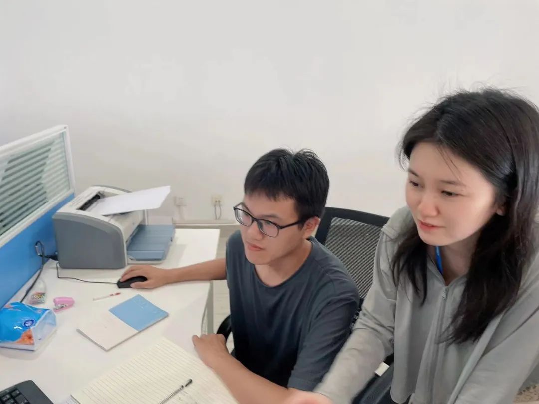 齊龍正在指導田旭三維可視化軟件研發(fā)工作。