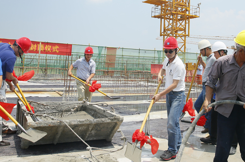 自2015年12月5日開工以來,項(xiàng)目承建方克服時(shí)間緊、任務(wù)重、惡劣天氣等不利因素,統(tǒng)籌協(xié)調(diào)、精心施工,歷經(jīng)7個(gè)月的艱苦奮戰(zhàn),終于迎來了雷達(dá)研發(fā)中心大樓主體結(jié)構(gòu)的封頂,公司新區(qū)建設(shè)關(guān)鍵節(jié)點(diǎn)順利完成。
