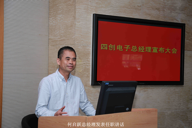 宣布大會上,新任四創(chuàng)公司總經(jīng)理何啟躍做了任職講話。他表示四創(chuàng)電子在董事會的領(lǐng)導(dǎo)下,在全體員工和領(lǐng)導(dǎo)的支持和努力下取得了巨大的成績,如何在新的市場下,在新的環(huán)境下實現(xiàn)騰飛發(fā)展,是一個重大的考驗。任重而道遠(yuǎn),今后將兢兢業(yè)業(yè),恪盡職守,和大家一起,努力地實現(xiàn)董事會提出的戰(zhàn)略目標(biāo)。講話最后,何啟躍總經(jīng)理對公司各部門提出了要求并安排了工作任務(wù),同時表示要主動學(xué)習(xí)公司的歷史及未來發(fā)展?fàn)顩r,盡快融入到四創(chuàng)電子,以期達(dá)成董事會對公司的目標(biāo)和期望。