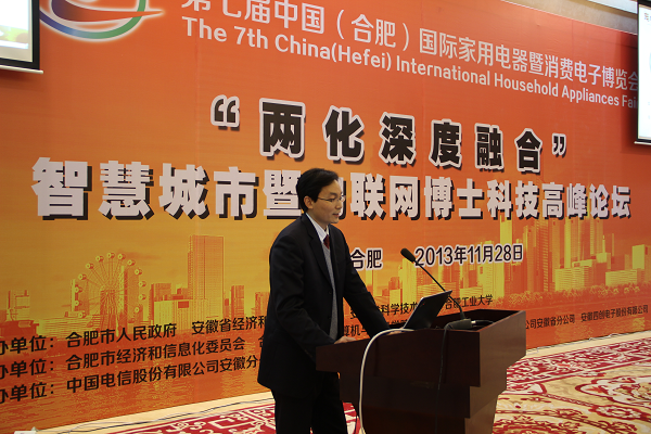 11月28日,由安徽省人民政府、工業(yè)和信息化部、中國(guó)國(guó)際貿(mào)易促進(jìn)委員會(huì)主辦,安徽省經(jīng)信委、合肥市人民政府、安徽省信息化協(xié)會(huì)承辦的《兩化深度融合之智慧城市暨物聯(lián)網(wǎng)博士科技高峰論壇》在合肥市稻香樓賓館隆重舉行。我公司連同中國(guó)電信安徽分公司、中國(guó)移動(dòng)安徽有限公司、中國(guó)聯(lián)通安徽分公司作為協(xié)辦單位參加了本次論壇。公司副總經(jīng)理王佐成代表公司出席會(huì)議并做了演講。